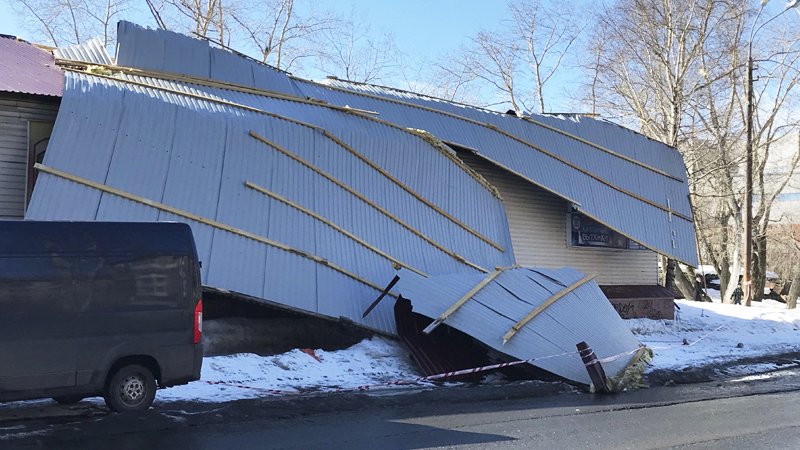 Оторванными от земли оказались рекламные щиты, деревья, фонарные столбы, крыши сооружений, мусорные контейнеры и строительные заборы, вывески магазинов.