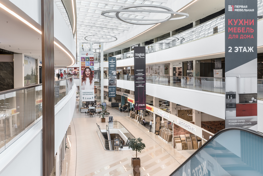 Огромный мебельный центр—это уникальная возможность на месте составить сочетания напольных, настенных покрытий, мебели и предметов декора. Ещё одно преимущество «Кубатуры» в том, что с первого по третий этаж помещение освещено естественным светом, который проходит через панорамно остеклённую крышу, таким образом, цвета не искажаются.