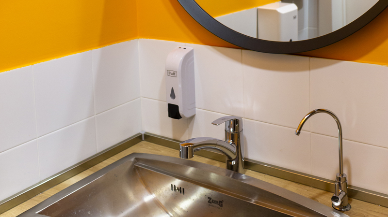 Большинство материалов отделки просты и заказывались в местных магазинах и фирмах: краска, подвесные потолки, натуральное дерево. Исключение составлял разве что пол, для которого была выбрана клеевая кварцвиниловая плитка под дерево производства Tarket. Особое внимание было уделено освещению: светильники выбирались с учетом функционального назначения зон, их соответствие стилю и необходимым параметрам освещенности. К слову, все, что комплектовалось «под заказ», доставлялось при помощи и под присмотром самого Евгения, а если быть точнее —