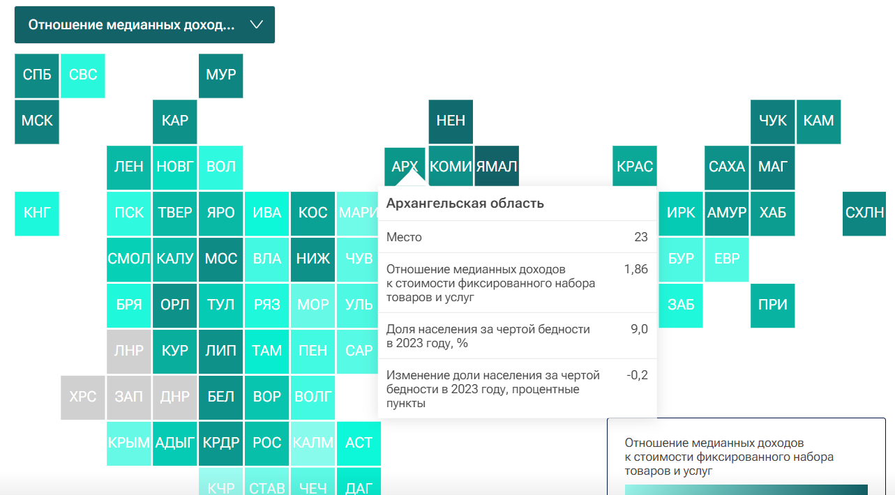 Федеральные эксперты составили рейтинг российских регионов по уровню доходов населения за 2023 год. Архангельская область в этом списке заняла 23-е место — за чертой бедности в регионе живут 9% населения.