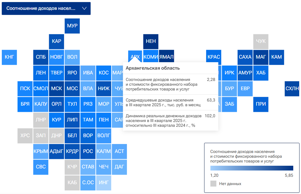 Поморье разместилось на 48-ом месте среди регионов России по уровню доходов населения в третьем квартале 2025 года. В среднем жители Архангельской области зарабатывают 63 тысячи рублей в месяц, что ниже среднероссийского уровня.