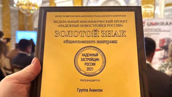 – Получив Золотой знак «Надежный застройщик России» мы в очередной раз подтвердили, что все наши объекты возводятся в соответствии с действующим законодательством и сдаются точно в срок. Жилые комплексы получили высочайшие баллы надежности. Наша компания делает ставку на комплексное освоение территорий в рамках масштабных инвестпроектов и программ КРТ, на строительство качественного и надежного жилье, импортозамещение и локализацию собственного производства, использование самых современных инженерных и информационных технологий,– отметил председатель Правления Группы Аквилон Александр Фролов.