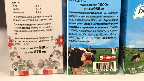 Таким образом производители экономят затраты, но и в какой-то степени вводят покупателей в заблуждение, полагают наблюдатели. Ведь все мы «привыкли», что в упаковке молока — литр. На самом деле в 1 кг молока — 0,97 литра. У некоторых поставщиков молочной продукции из Архангельской области стандартная по размерам картонная упаковка и вовсе содержит всего 0,875 литра напитка.