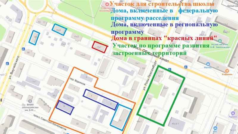 Так, три дома - на пр. Обводный канал, 15 к.5, ул. Выучейского 60, ул. Розы Люксембург, 55 вошли в федеральную программу переселения. Дома №3 и 5 в переулке Водников и №34 на пр. Советских космонавтов включены в региональную программу. После сноса на их месте можно строить только социальное жилье и инфраструктуру. Например, скверы или рекреационные зоны. Кроме того, по действующей градостроительной документации часть домов попадают в границы «красных линий». После их расселения и сноса строить что-либо здесь просто запрещено. Например, участок дома на пр. Обводный канал, 15 к. 1 предназначен для объектов улично-дорожной сети.