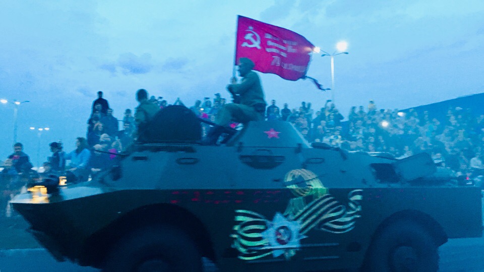 Еще одним ярким выступлением стал сюжет на тему Великой Отечественной войны: военная техника, выстрелы и солдаты. Короткая, но душевно обыгранная сцена в память о погибших защитниках родины завершилась праздничным фейерверком.