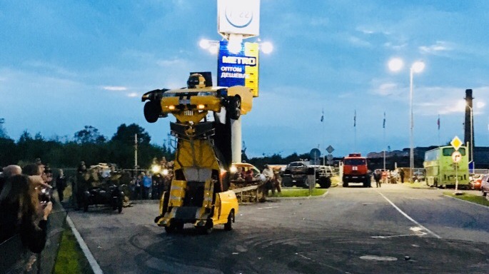 Огромный восторг зрителей вызвало появление трансформеров. На глазах гостей обычное свиду такси превратилось в робота, а вскоре грузовик поднялся на огромную высоту.