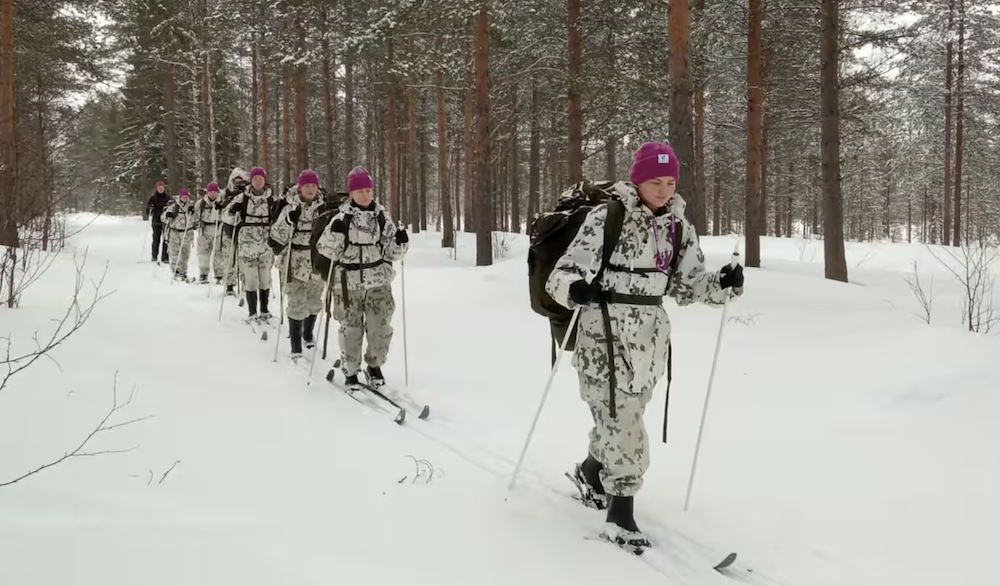 В ожидании вторжения со стороны России, финские домохозяйки уже надели камуфляж и стали в качестве тренировки ночевать в палатках в мороз. Они разводять костры и готовят еду в лесу, при этом успевают стрелять и оказывать друг другу первую медпомощь.