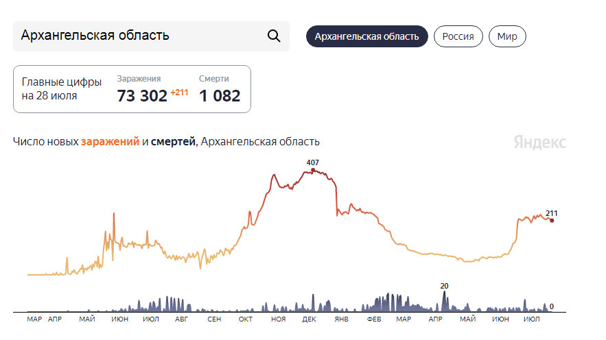 В Архангельской области 28 июля 207 человек заболели коронавирусом