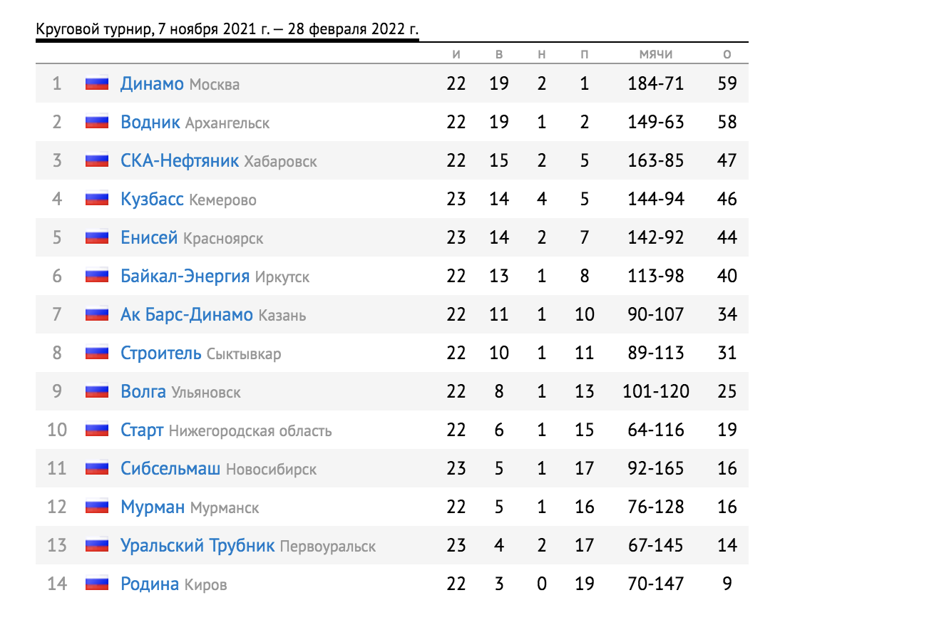 Вчера, 16 февраля, в Архангельске в очередном туре предварительного этапа чемпионата России «Водник» принимал столичное «Динамо». К расстройству местных болельщиков «желто-зеленые» проиграли со счетом 5:9.