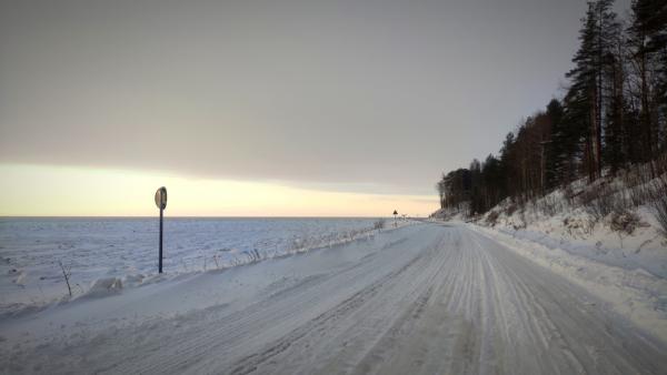Зимняя дорога вдоль Онежской губы