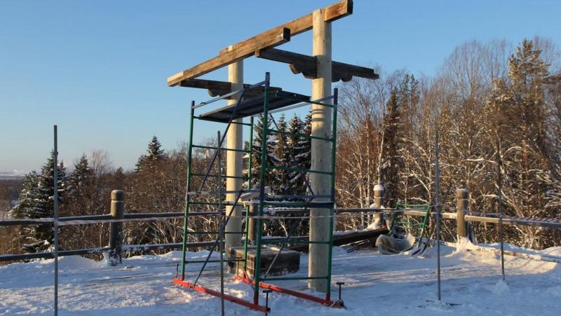 Колодец с воротом, расположенный у дома Лимонникова, в Мезенском секторе на подпорной стенке, – один из объектов, где в 2019 году проводится реконструкция. В январе там были выполнены работы по ремонту конструкций, изготовлены новые столбы, отреставрированы ручки колеса ворота и частично – детали кровли, охлупень и тёс которой плотники музея обновили ранее. Полностью работы на этом колодце будут завершены летом.