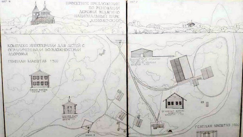 Летом студенты Московского архитектурного института прошли в Ведягина «полевую» обмерную практику. Кенозерский национальный парк сотрудничает с вузом уже семь лет, и в деревню архитекторы приезжают не впервые. В этом году практиканты продолжили работу своих предшественников и завершили обмеры зданий. А преподаватели решились на эксперимент: предложили молодёжи разработать проекты по привлечению в Ведягина людей.