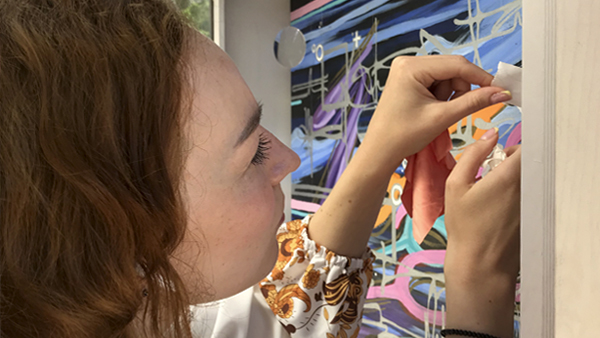 Увидеть творения молодого архангельского художника может любой желающий, даже пассажир автобуса – выставку анонсирует полотно, интегрированное в остановку общественного транспорта возле кукольного театра на Троицком проспекте. Динамичный «оптический» холст, закрепленный внутри стеклянного короба, является своеобразной презентацией экспозиции.