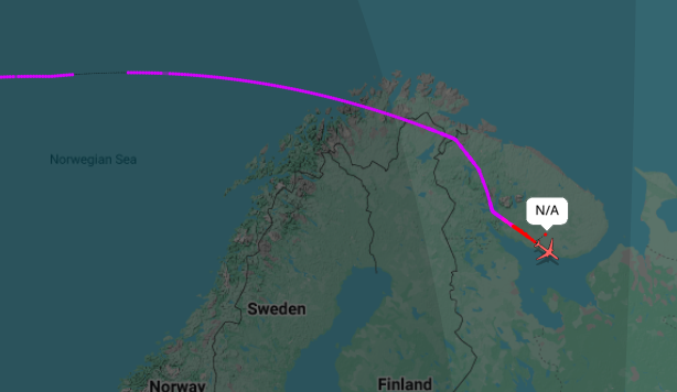Согласно информации сервиса, речь идет о Boeing 787, который вылетел с авиабазы Эндрюс в пригороде Вашингтона. По пути в Россию самолет пролетел над Гренландией, Норвегией и Финляндией, после чего пересек государственную границу в районе Мурманской области.