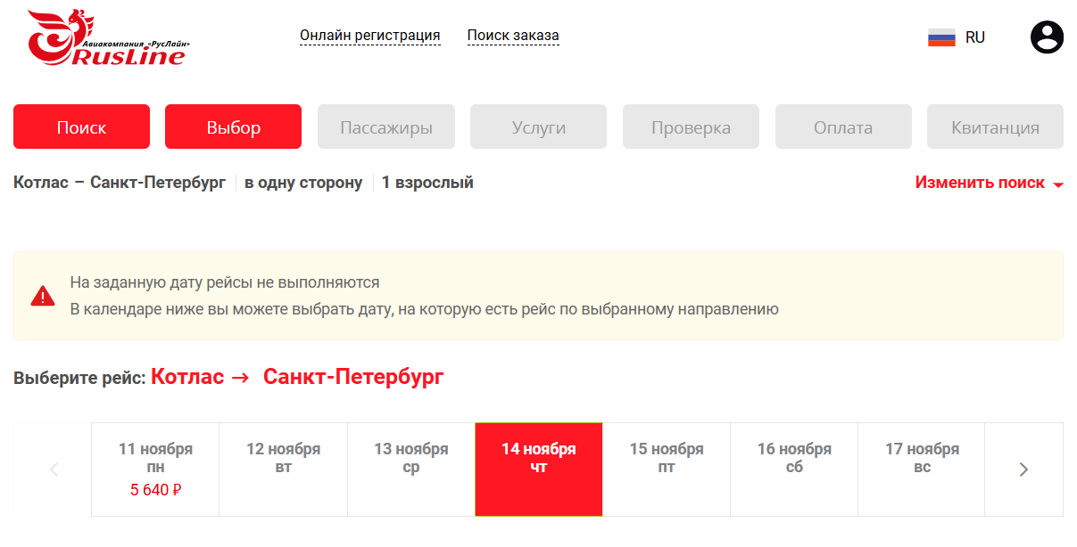Самолеты авиакомпании «РусЛайн» будет летать из Котласа до культурной столицы и обратно до конца ноября. Рейсы запланированы дважды в неделю — по понедельникам и четвергам.
