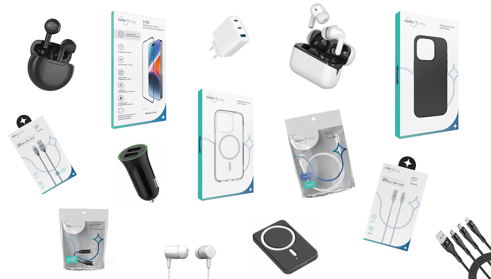Под маркой Stellarway МегаФон будет выпускать более 100 товаров во всех популярных категориях: защитные стёкла, аккумуляторы, проводные и беспроводные наушники, адаптеры, аудио и дата-кабели, сетевые и автомобильные зарядные устройства, проводные гарнитуры. В том числе будут представлены беспроводные зарядки для Apple Watch и чехлы MagSafe.