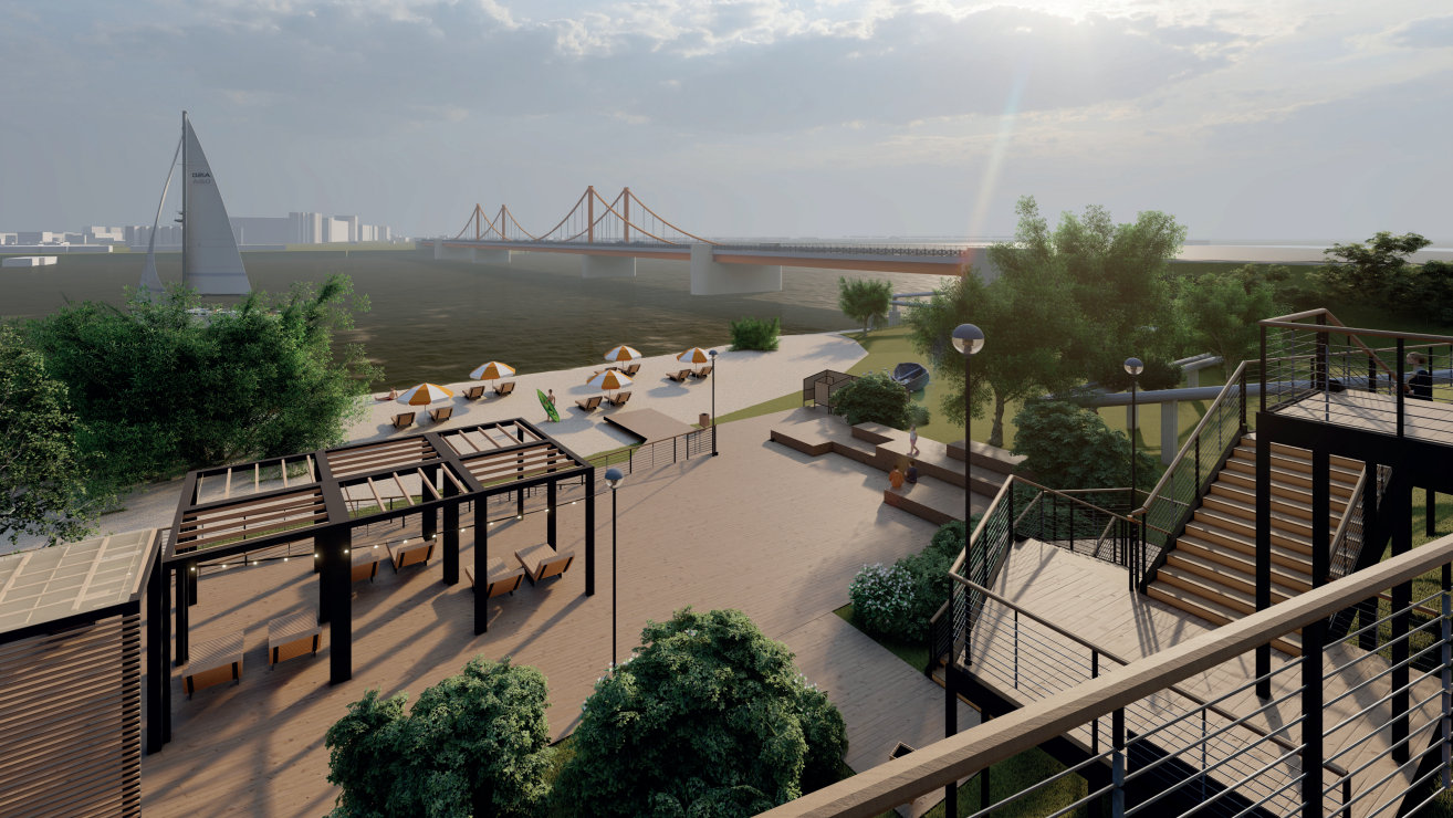 Вот так предлагается преобразить спуск на пляж в районе Кузнечевского моста. Через несколько лет заброшенная сейчас территория может стать визитной карточкой Архангельска.