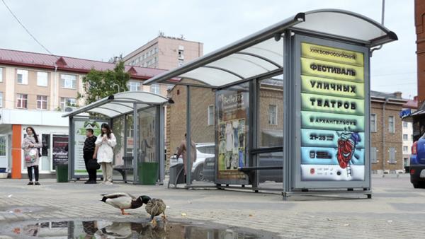 Пернатая парочка облюбовала остановку в центре Архангельска