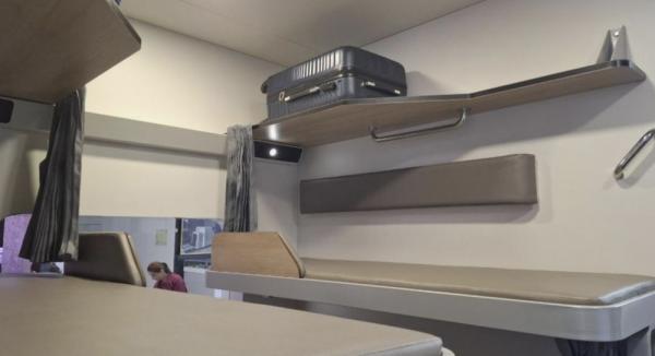 Каждое спальное место будет оборудовано индивидуальными шторками, столиками для пассажиров верхних и нижних полок, светильниками и розетками USB и 220В. В новом вагоне также будут две санитарные комнаты.