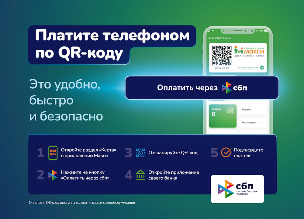 Теперь в магазинах «Макси» можно оплачивать покупки с помощью смартфона – через Систему быстрых платежей (СБП). Новый способ безналичной оплаты действует на всех кассах самообслуживания.