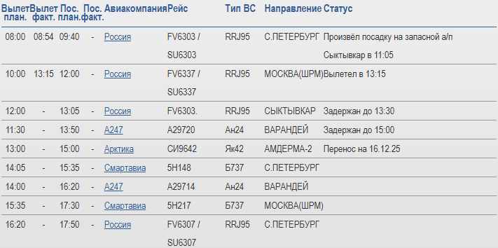 Так, рейс авиакомпании «Россия» из Санкт-Петербурга произвел посадку не в Архангельске, а в Сыктывкаре — самолет приземлился на запасном аэродроме в 11:05.