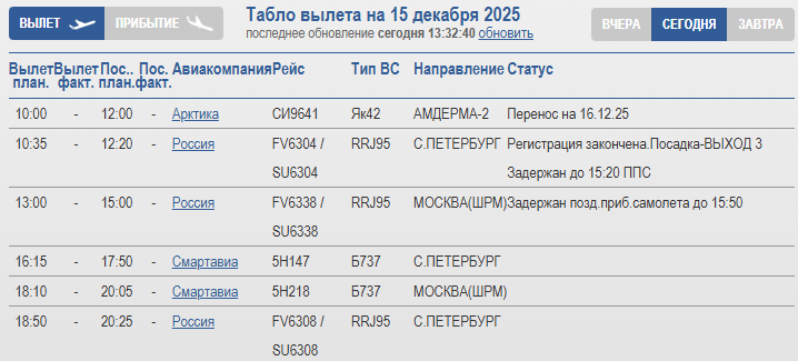 Корректировки коснулись и региональных направлений. Рейсы в Амдерму и Варандей были перенесены на более позднее время, часть из них — на следующие сутки. Пассажирам рекомендуют следить за обновлениями онлайн-табло и уточнять информацию у авиакомпаний.