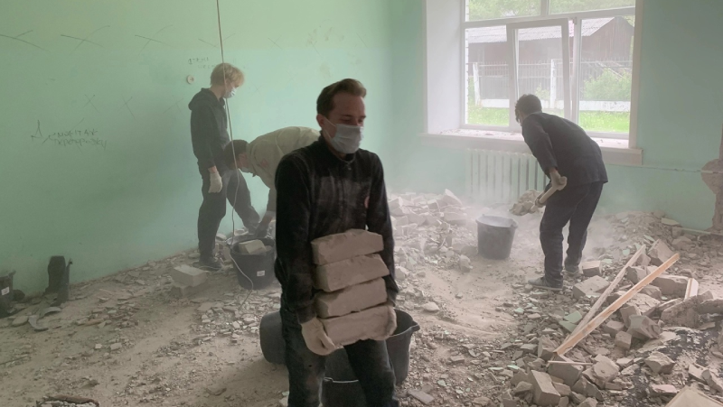 С мая этого года бойцы студенческих отрядов Архангельской области и сами помогают с работами внутри будущего дома в свое свободное время: демонтируют перегородки и стены, снимают старые покрытия и подготавливают здание к следующему этапу ремонта. Вместе с ребятами работают сотрудники штаба молодежных трудовых отрядов Архангельской области.