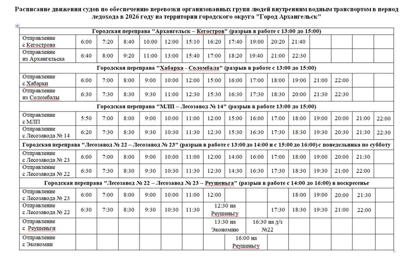 Кроме того, обновлено расписание буксира на линии 22 Лесозавод – 23 Лесозавод: в утренние и вечерние часы рейсы теперь будут выполняться каждый час. Уже в воскресенье, 5 апреля, планируется первый рейс в Реушеньгу.