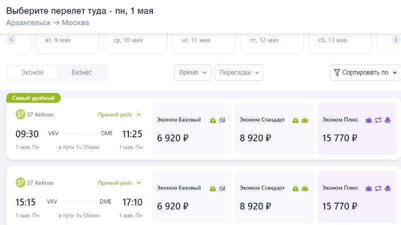 На время закрытия основной воздушной гавани Архангельска перевозчик S7 Airlines будет осуществлять по пять рейсов до Москвы ежедневно. Безвозвратный билет в одну сторону стоит почти 7 тыс. рублей.