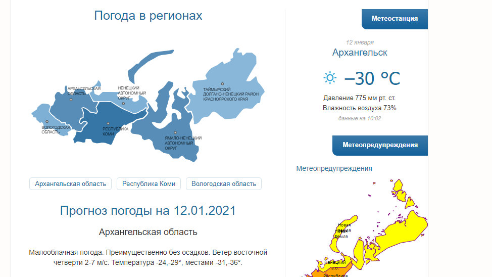 По данным на 10 часов утра, температура в Архангельске была -30 градусов.